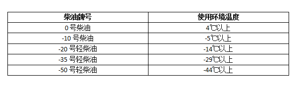 因此,用戶在購(gòu)買柴油發(fā)電機(jī)組燃油時(shí)一定不要貪圖便宜,使用劣質(zhì)柴油,會(huì)對(duì)機(jī)組造成不可逆轉(zhuǎn)的損害。那么,用戶該如何正確選擇符合規(guī)定的柴油呢?頂博電力建議用戶應(yīng)按不同地區(qū)的環(huán)境溫度來按如下表格進(jìn)行選擇。